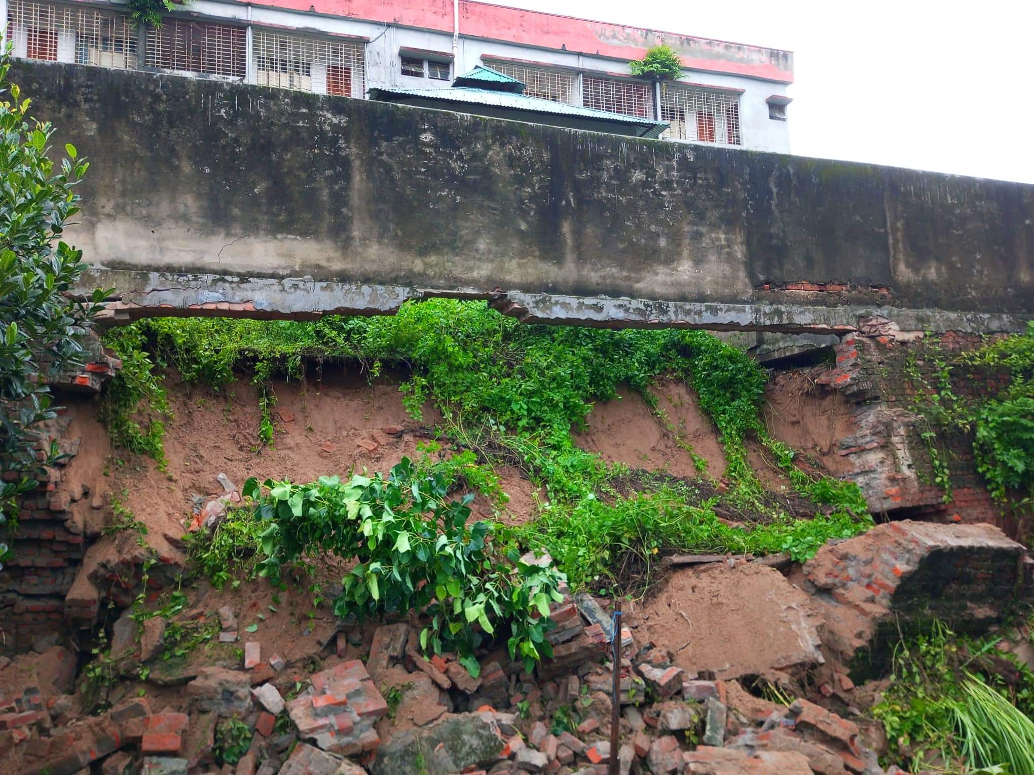 টানা বৃষ্টির কারণে খাগড়াছড়ির পানছড়িতে ছাত্রাবাসের দেয়াল ধ্বস।