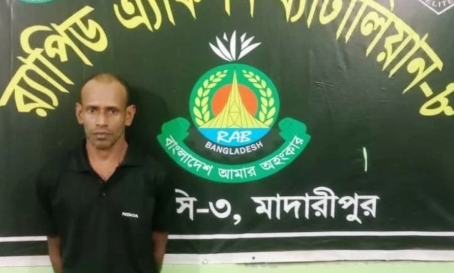 আজ শুক্রবার (২৬ সেপ্টেম্বর) র‌্যাবের পাঠানো এক প্রেস বিজ্ঞপ্তিতে এ তথ্য জানানো হয়েছে। বৃহস্পতিবার (২৫ সেপ্টেম্বর) বিকেল সাড়ে ৫ টার দিকে শিবচর উপজেলার পাঁচ্চর চর কান্দি এলাকা থেকে আসামিকে গ্রেফতার করা হয়। গ্রেফতারকৃত ব্যক্তির নাম রাসেল মাহমুদ সবুজ (৩০)। মাদারীপুর র‌্যাব -৮ এর কোম্পানি কমান্ডার জনাব, মীর মনির হোসেন জানান, মামলার পরই র‌্যাব ছায়া তদন্ত শুরু করেন এবং গোপন সংবাদ ও তথ্য প্রযুক্তির মাধ্যমে হত্যাকাণ্ডে জড়িতকে গ্রেফতারে সক্ষম হই আমরা। আসামিকে প্রাথমিকভাবে জিজ্ঞাসাবাদে বিষয়টি তিনি জানান, তীব্র ক্ষোভ থেকে এ হত্যাকাণ্ড সংঘটিত হয়েছে বলে জানা যায়।