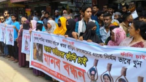 গৃহবধূকে হত্যার প্রতিবাদে বরিশালে মানববন্ধন।